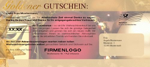 Mailingkarte: Goldener Gutschein