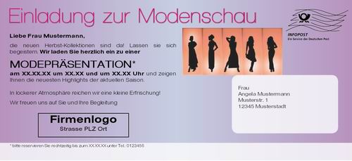 Mailingkarte: Einladung zur Modenschau
