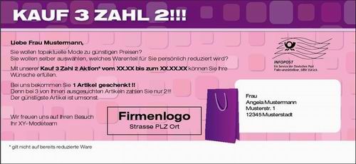 Mailingkarte: Kauf 3 Zahl 2