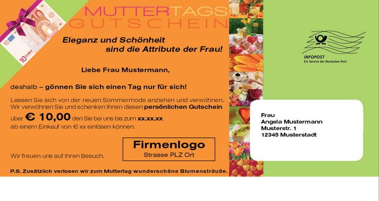 Mailingkarte: Muttertags Gutschein