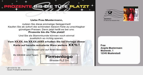 Mailingkarte: Prozente bis die Tüte platzt