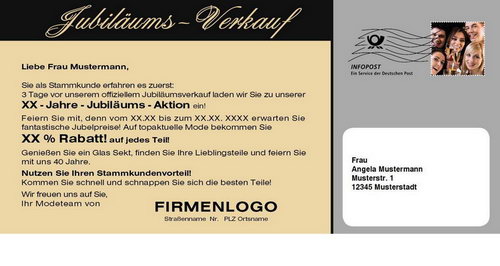 Mailingkarte: Jubiläumsverkauf