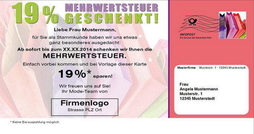 Mailingkarte: Mehrwertsteuer Geschenkt