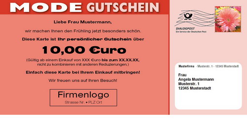 Mailingkarte: Mode Gutschein