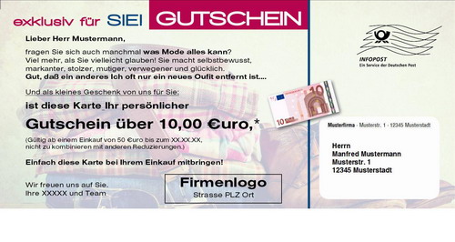 Mailingkarte: Mode-Gutschein