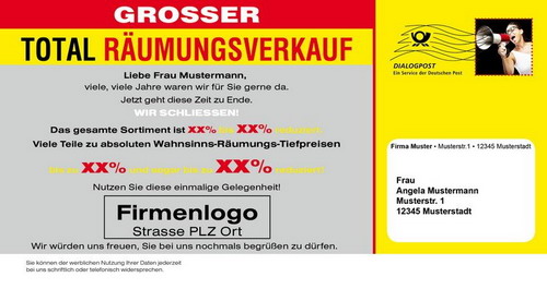 Mailingkarte: Räumungsverkauf